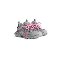 Track Trail Laces Sneaker in grey and pink polyurethane, polyester and nylon PRODUCT DETAILS • Leather free • Sneaker • Polyurethane and polyester • Written size at the edge of the toe • Track debossed at the back of the heel • BB debossed on front of the outsole • Printed logo on the exterior • Debossed logo on the tongue • Laces with cord lock at back • Double laces knotted in a usual equipment way • Back and tongue pull-on tab • Dynamic sole design with an augmented back for more comfort • Made in China Upper: polyurethane, polyester - Sole: rubber, EVA, TPU - Insole: gel