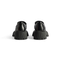 Tractor Loafer in black smooth calfskin PRODUCT DETAILS • Smooth calfskin • Loafer • Chunky design • Extra round toe • Visible tone-on-tone top-stitching • 20mm arch • Thick toothed rubber outsole • Logo embossed on the upper • Made in Italy • Wipe with a soft cloth Material: 100% calfskin