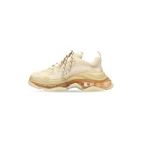 Triple S Clear Sole Sneaker in beige double foam and mesh PRODUCT DETAILS • 100% non leather Sneaker • Complex 3-layered outsole, Clear Sole technology • TPU injected inside the sole creating an air bubble for more comfort, a lighter shoe and a shock absorber effect • Embroidered size at the edge of the toe • Embroidered logo on the side • Embossed logo in the back • Triple S rubber branding on the tongue • 2 laces loops including 1 functional • Athletic lacing system featuring 12 fabric eyelets • Bicolor laces • 1 additional pair of laces included • Back pull-on tab and tongue pull-on tab • Washed effect for a well-worn look • Made in China • Wipe with a soft and dry cloth Material: 52% polyester, 48% polyurethane