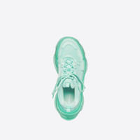 Triple S Sneaker Clear Sole in light green double foam and mesh PRODUCT DETAILS • Leather free • Sneaker • Double foam and mesh • Complex 3-layered outsole, Clear Sole technology • Embroidered size at the edge of the toe • Embroidered logo on the side • Embossed logo in the back • Triple S rubber branding on the tongue • 2 laces loops including 1 functional • Athletic lacing system featuring 12 fabric eyelets • Bicolor laces recalling hiking boots’ laces • 1 additional pair of laces • Back pull-on tab and tongue pull-on tab • Made in China • Wipe with a soft and dry cloth Material: 52% polyester, 48% polyurethane