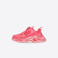 Triple S Faded Sneaker in red double foam and mesh PRODUCT DETAILS • 100% leather free Sneaker • Double foam and mesh Sneaker • Faded effect • Embroidered size at the edge of the toe • Embroidered logo on the side • Embossed logo in the back • Triple S rubber branding on the tongue • 2 laces loops including 1 functional • Athletic lacing system featuring 12 fabric eyelets • Bicolor laces recalling hiking boots’ laces • 1 additional pair of laces • Back pull-on tab and tongue pull-on tab • Made in China • Wipe with a soft and dry cloth Material: 48% polyurethane + 52% polyester