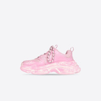 Triple S Faded Sneaker in pink double foam and mesh PRODUCT DETAILS • Leather free Sneaker • Double foam and mesh • Faded effect • Complex 3-layered outsole • Embroidered size at the edge of the toe • Embroidered logo on the side • Embossed logo in the back • Triple S rubber branding on the tongue • 2 laces loops including 1 functional • Athletic lacing system featuring 12 fabric eyelets • Bicolor laces recalling hiking boots’ laces • 1 additional pair of laces • Back pull-on tab and tongue pull-on tab • Made in China • Wipe with a soft and dry cloth Material: 48% polyurethane + 52% polyester