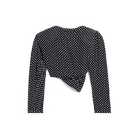 Tucked-In Blouse in black and cream polka dots viscose crepe for Women PRODUCT DETAILS • Printed viscose crepe with polka dots • Desctructured blouse • Deep neckline • Asymmetrical drapes and ruffles • Off-center shoulders with shoulder pads • Invisible zip under left ruffle • Long sleeves • Made in Italy Main material: 100% viscose