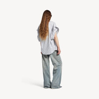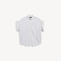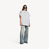 Tucked Sleeve Shirt in white and blue striped poplin PRODUCT DETAILS • Striped poplin • Shirt shape • Button-down collar • 7 button front • Short tucked sleeves • 1 chest pocket • Rounded hem • Balenciaga engraved buttons • Balenciaga logo embroidered at chest • Made in Italy Main material: 100% cotton