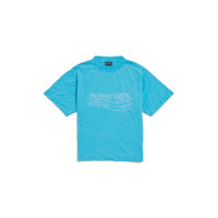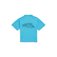 Washed Crayon Political T-Shirt Medium Fit in azure dry jersey for Women PRODUCT DETAILS • Dry jersey • Crewneck • Short sleeves • Washed crayon political artwork printed • Made in Portugal Main material: 100% cotton