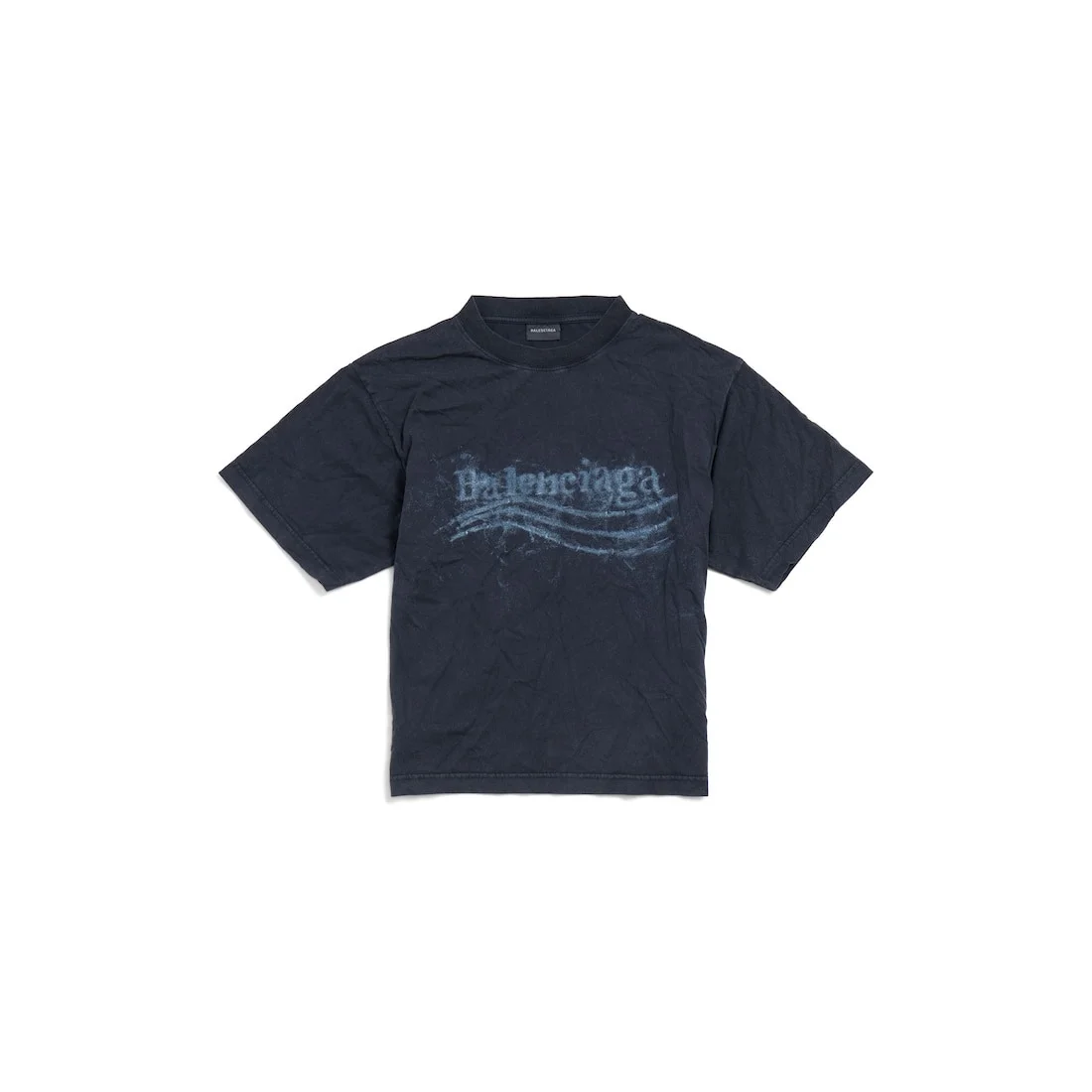 Washed Crayon Political T-Shirt Medium Fit in faded black dry jersey for Women PRODUCT DETAILS • Dry jersey • Crewneck • Short sleeves • Washed crayon political artwork printed • Made in Portugal Main material: 100% cotton