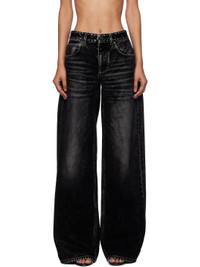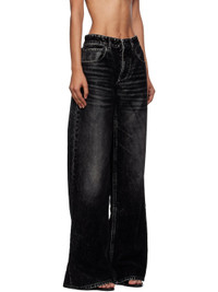 Non-stretch denim jeans. · Fading and whiskering throughout · Belt loops · Five-pocket styling · Zip fly · Logo patch at back waistband Supplier color: Black shiny Body: 100% cotton. Pocket lining: 95% polyester, 35% cotton. Made in Italy 251342F069003