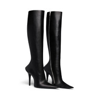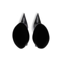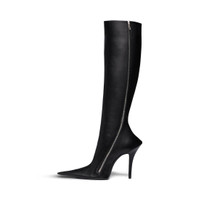 Witch 110mm Boot in black shiny soft sheepskin PRODUCT DETAILS • Shiny soft sheepskin • Boot • Elongated pointed toe • Prominent and exaggerated counter • 110mm • Witch heel • Inner zipped closure • Tone-on-tone covered heel • Black sole • Made in Italy • Wipe with a soft cloth Material: 100% sheepskin
