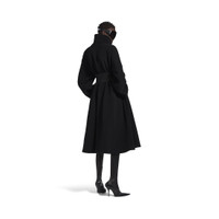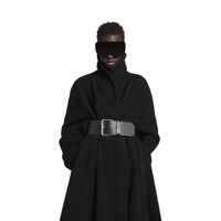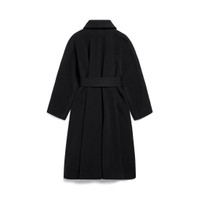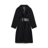 Wrap Coat in black brushed felted wool for Women is from look 72 of Balenciaga Winter 25 Collection. PRODUCT DETAILS • Felted wool and polyamide • Shawl collar • Wrap-around construction • Long kimono sleeves • Belt closure • Tone-on-tone belt • 2 belt loops at side • 2 slash pockets • Made in Italy Main material: 70% wool, 30% polyamide