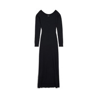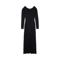 Off Shoulder V-Neck Dress in black mix wool knit PRODUCT DETAILS • Wool mix • V-neck • Designed to be worn off the shoulder • Long sleeves • Made in Italy Main material: 66% wool, 28% polyester, 5% polyamide, 1% ealstane