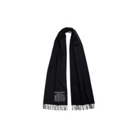 Balenciaga Garde-Robe Scarf in black and off-white cashmere and wool PRODUCT DETAILS • Dimensions : LX x HX inch • Cashmere and wool knit • Can be doubled around the neck • Balenciaga Garde-Robe artwork jacquard at bottom • Fringed finishing • Made in Italy Main material: 95% cashmere, 5% wool