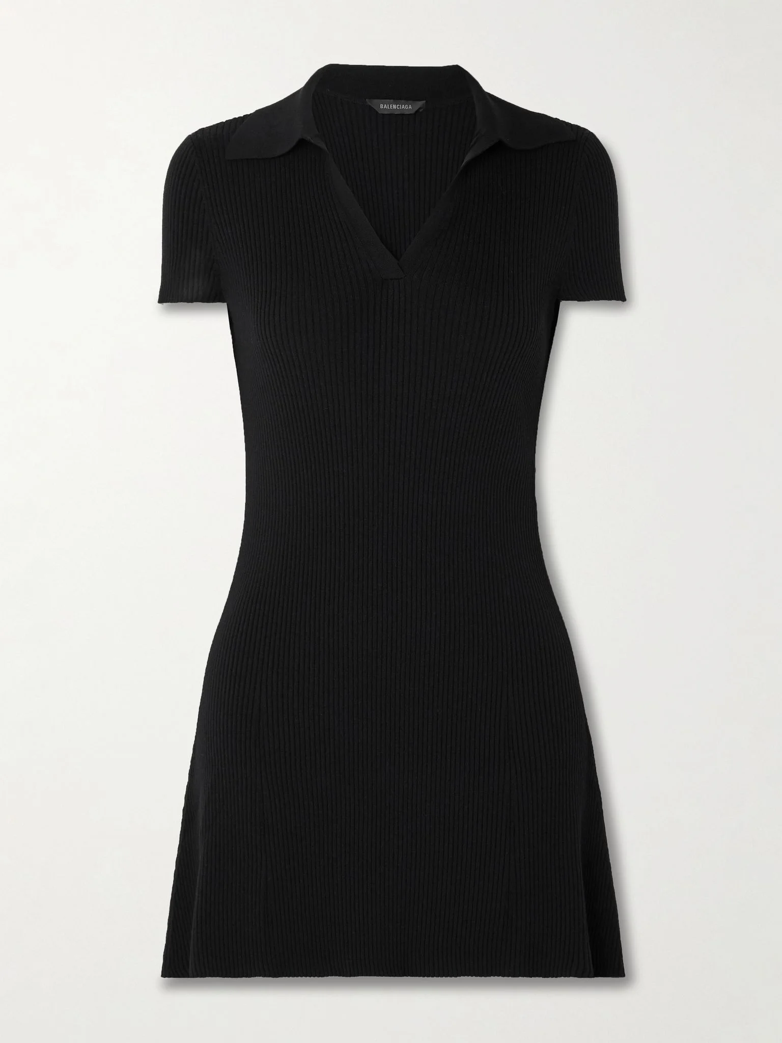 Balenciaga's dress has a polo neckline that brings a fresh and preppy feel to the style. Made from wool-blend with a soft ribbed handle, it fits close through the body and flares out to a flippy mini skirt. Wear yours with sneakers, loafers or heels, depending on your destination. Size & Fit - Fits true to size, take your normal size - Designed for a slim fit - Mid-weight knit - Model is 177cm/ 5'10" and is wearing a size Small Model measurements: - Bust: 85cm/ 33” - Waist: 66cm/ 26” - Hip: 92cm/ 36” Details & Care - Black wool-blend - Slips on - 90% wool, 8% polyamide, 2% elastane - Dry clean