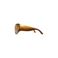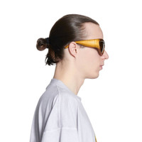 Wrap D-Frame Sunglasses in gold bio injected nylon with light brown lenses are from the look 42 and 53 of the Balenciaga’s Summer 22, Red Carpet Collection. PRODUCT DETAILS • Temple length : 4,5 inch • Bridge length : 0,7 inch • Bio injected nylon frame and temples • D-frame shape • Standard fit • Balenciaga logo engraved on each temple • Lens material : Nylon • Lens category : 2 • 100% UVA/UVB protection • Not suitable for optical conversion • Made in Italy • Wipe with a soft cloth • BB0228S Material: 100% nylon