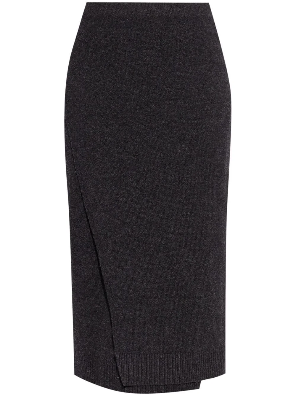 wrap knit skirt Highlights - Anthracite grey - Virgin wool - Knitted construction - Wrap design - Mid-length - Ribbed hem Made in Italy Composition Virgin Wool 100%