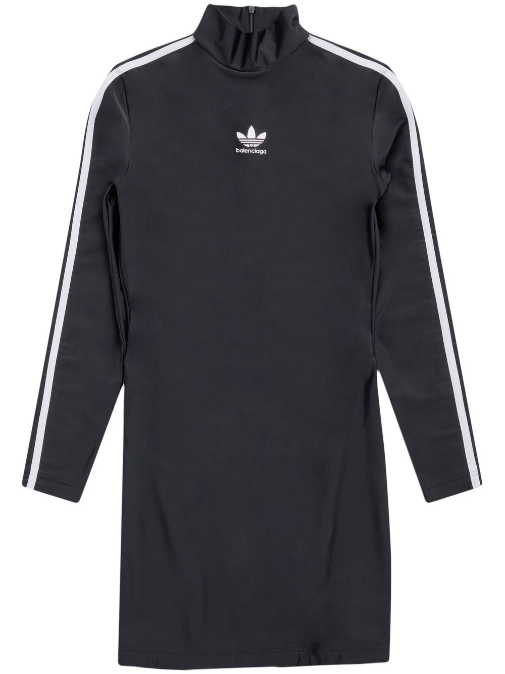 x adidas long-sleeve mini dress x adidas long-sleeve mini dress from BALENCIAGA featuring black/white, stretch-design, signature trefoil logo detail, signature 3-Stripes logo, slim cut, high neck, long sleeves, concealed rear zip fastening and straight hem. Conscious: We've partnered with Good On You – an ethical agency that rates how sustainably brands perform. This item comes from a brand that performs well in relation to their impact on the planet.. Made in France Composition Polyamide 78%, Elastane 22%