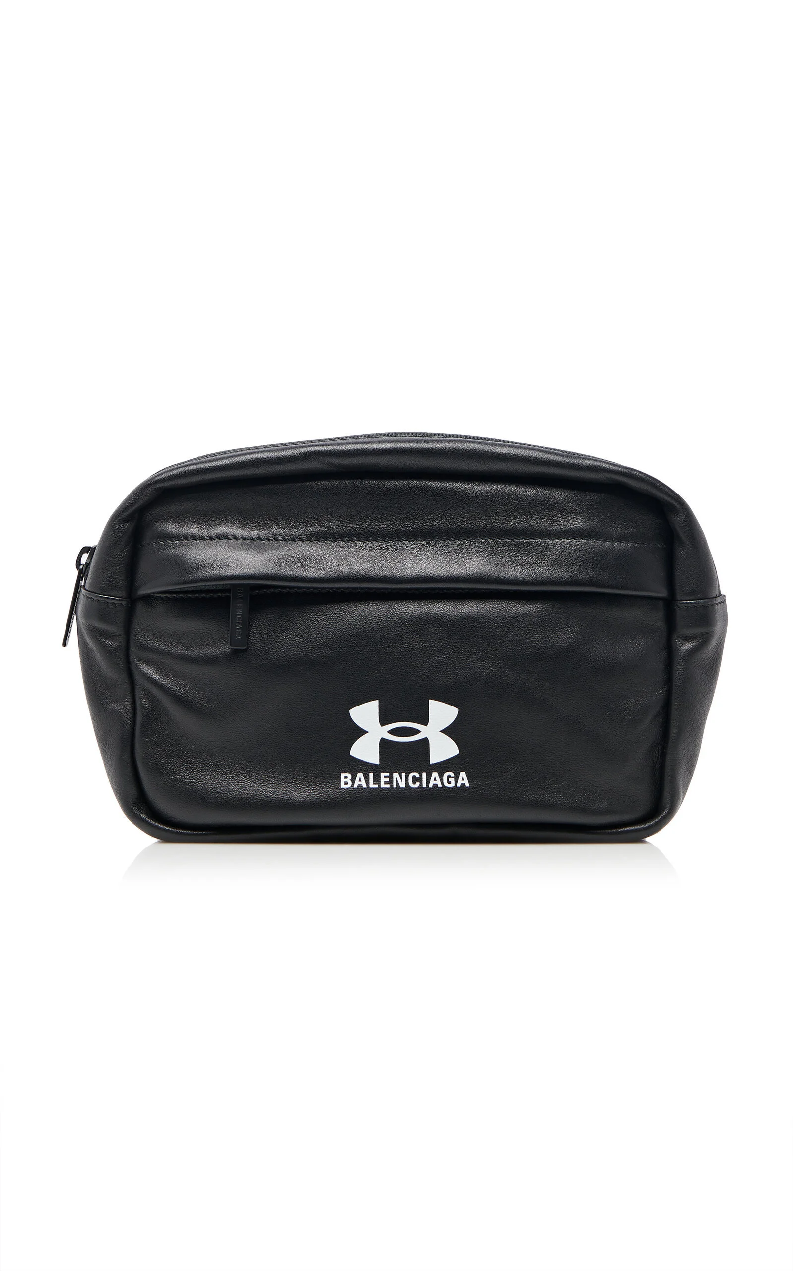 In highly-anticipated Balenciaga fashion, the Spanish house has collabed with sports-wear label Under Armour for an exclusive capsule of co-branded gear. Crafted from the house's signature smooth glamour leather, this co-branded pouch is lined with liquid-resistant fabric to easily travel as a toiletry bag. PRODUCT DETAILS - Zip fastening along top and side - Composition: leather - Made in Italy