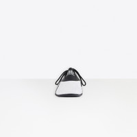 Zen Sneaker in white and black matt technical polyurethane PRODUCT DETAILS Composition: 100% Polyurethane - 100% leather free - Round toe - Elasticated rubber tongue with white printed logo - 2 lacing openings - Black round laces - Topstitching details on the upper - Thin rubber sole with embossed size and logo - Foam insole - Made in China - Wipe with a soft cloth - The item comes with a Balenciaga dustbag and box