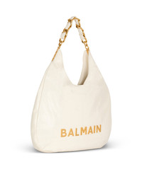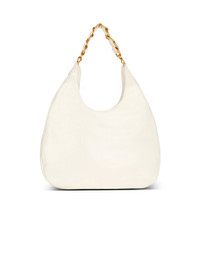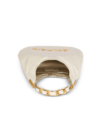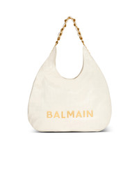 1945 Soft Hobo bag in embossed crinkled calfskin with a PB Labyrinth monogram - Carry in the hand or wear on the shoulder - Metal Balmain logo - Chain handle interlaced with leather - Metal side plaque with engraved B buttons - Magnetic clasp - Twill lining - Inside zipped pocket - Inside patch pocket - Embossed leather card pocket - Gold hardware - Dimensions: 5.5 x 45.5 x 38 cm - Main material: 100% calfskin leather - Made in Italy - Item: DN0BT929LETF