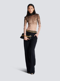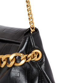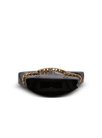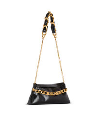 1945 Soft clutch in embossed crinkled calfskin with a PB Labyrinth monogram - Carry in the hand, on the shoulder or across the body - Metal chain handle and Balmain logo - Removable chain shoulder strap with leather and snap hooks - Eyelets on the sides - Magnetic fastening - Twill lining - Inside patch pocket - Embossed leather card pocket - Gold hardware - Dimensions: 31 x 13 x 5.5 cm - Main material: 100% calfskin - Made in Italy - Item: EN1LQ955LETF