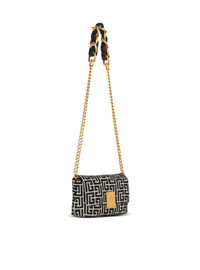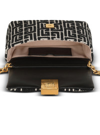 1945 Soft mini bag with jacquard Balmain monogram - Mini model - Chain and leather handle - Magnetic clasp with “Balmain Paris 1945” exterior plaque in antique gold effect - Comes with a protective cover - Dimensions: 19 x 11.5 x 6.5 cm - Main material: 84% cotton, 16% polyester - Made in Italy - Item: DN1BJ796TJNA