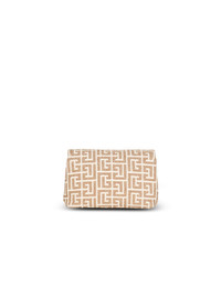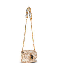 1945 Soft mini bag with Balmain monogram Mini model, chain and leather handle, magnetic clasp with “Balmain Paris 1945” exterior plaque in antique gold effect Comes with a protective cover Dimensions: 19 x 11.5 x 6.5 cm Made in Italy Material: 60% polyester, 31% cotton. 9% polyamide Item: AN1BJ796TJLZ