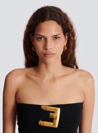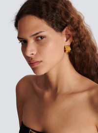 3D PB hoop earrings - Gold brass - Embossed PB logo in 3D - Cube shape - Stud fastening with push clasp - Main material: 100% brass - Made in Thailand - Item: GN1XK586MBRA