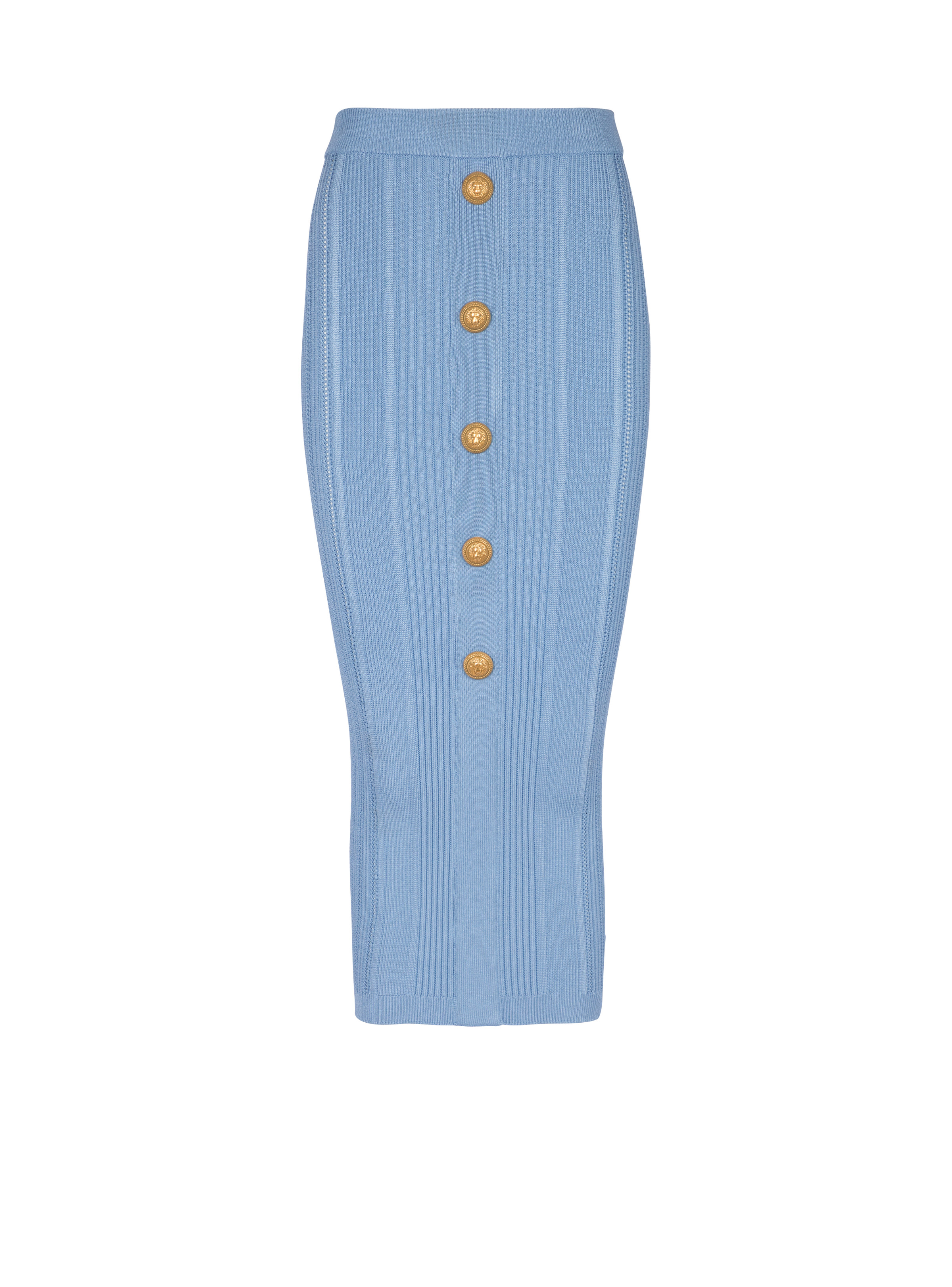 5-button knit midi skirt - 5 decorative “Signature Lion” golden metal buttons - Tight fit - High waist - Model measures 178cm and wears a size 36 - Main material: 84% viscose 16% polyester - Made in Italy - Item: CF1LD043KF24100% of the viscose fibres used to make this garment come from responsibly managed and FSC®-certified forests