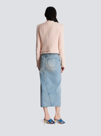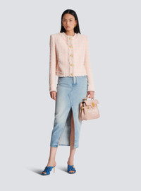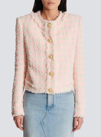 5-button textured tweed jacket - Round neckline - Structured shoulders - Long sleeves - Cuffs with 5 buttons - Front fastening with 5 press studs - "Chain Lion Thread" buttons in two-tone metal - Raw hems - Straight cut - Model measures 179cm and wears a size 36 - Main material: 47% polyamide 37% cotton 16% acrylic - Made in Poland - Item: EF1SK719XK69