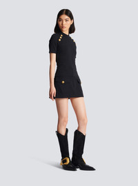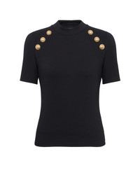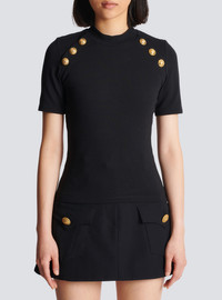 6-buttons plain jersey T-shirt - Crew neck - 6 decorative "Coin" buttons in gold metal on the front - Short sleeves - Fitted cut - Model measures 179cm and wears a size S - Main material: 39% modal 39% cotton 12% elastane 10% polyamide - Made in Portugal - Item: DF1EF090JH30
