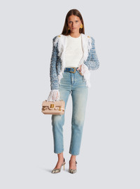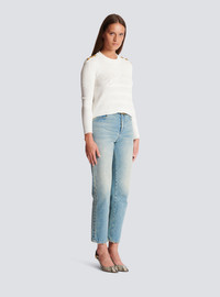 Balmain Signature fine knit jumper - Balmain Signature trompe-l'œil logo - 6 decorative “Signature Lion” golden metal buttons - Tight fit - Round neck - Long sleeves - Ribbed edging - Model measures 180cm and wears a size 36 - Main material: 84% viscose 16% polyester - Made in Italy - Item: CF1KA003KF24100% of the viscose fibers in this garment come from sustainably managed forests and certified