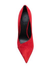 Agnes pumps Olivier Rousteing injects his signature glamour and elegance into Balmain's AW17 collection, presenting statement accessories for the modern woman. Expertly sculpted in Italy from sumptuous bright red suede, these 'Agnes' pumps will be the perfect finishing touch to evening ensembles. The pair features a high stiletto heel with a gold-tone panel, a branded kid leather insole, a pointed toe and an asymmetric vamp. Made in Italy Composition Lining: Calf Leather 100% Sole: Calf Leather 100% Outer: Kid Leather 100% SIZE & FIT Measurement Sole height 0.39 in(1 cm) HEEL 4.72 in(12 cm)
