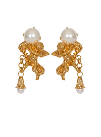 Anges baroque golden brass earrings - Base embellished with a bead - Textured angel shape - Pendant with chain mail and beads - Stud fastening with push clasp - One size - Main material: 100% brass - Made in Italy - Item: FN1XI517MPLT