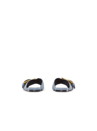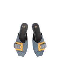 Anthem flat denim sandals - Open elongated square toe - Strap with PB-engraved golden metal buckle - Open back - Leather outer sole, insole and lining - Heel height: 0.5 cm - Main material: 100% cotton - Made in Italy - Item: FN1UP158TWSD