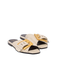Anthem flat calfskin leather sandals - Open elongated square toe - Strap with PB-engraved golden metal buckle - Leather outer sole, insole and lining - Heel height: 1.5 cm - Main material: 100% calfskin - Made in Italy - Item: FN1UP141LVIT