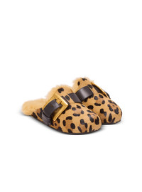 Anthem leopard print ponyskin leather and faux fur mules