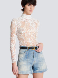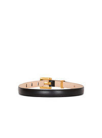 Anthem narrow calfskin leather belt - Adjustable fastening - Gold metal buckle - PB-engraved prong - Balmain-engraved gold metal belt loop - Embossed Balmain logo on the inside - Width: 2 cm - Main material: 100% calfskin - Made in Italy - Item: FN1WJ191LSLX