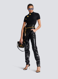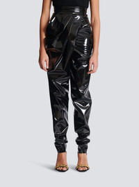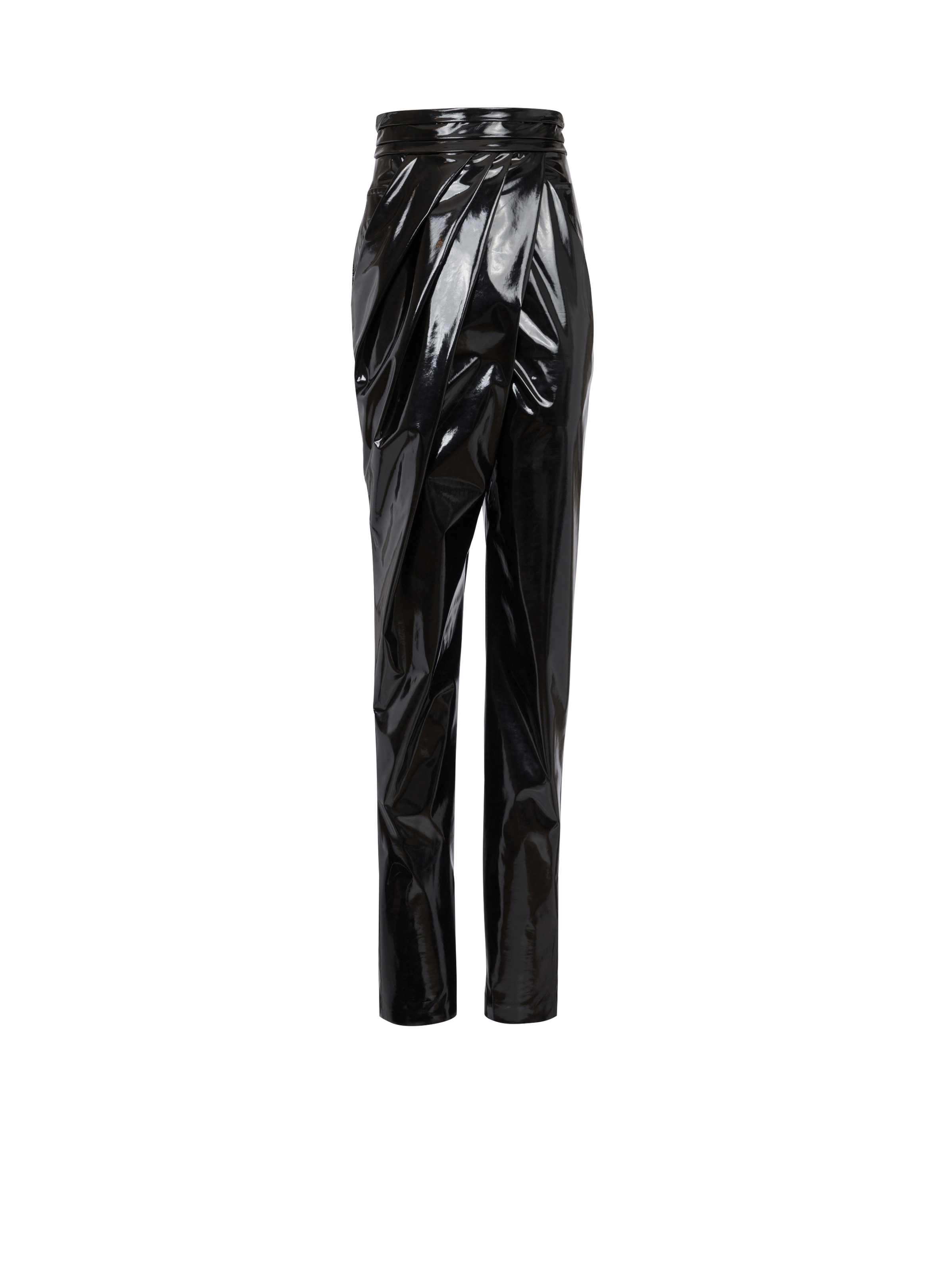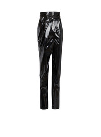 Draped vinyl trousers - High waist and tight ankles - Draped at the waist on the front - 2 invisible slanted pockets - Golden metal zip fastening at the back - Model measures 176cm and wears a size 36 - Material: 100% polyester - Made in Italy - Item: BF1PN160XG51