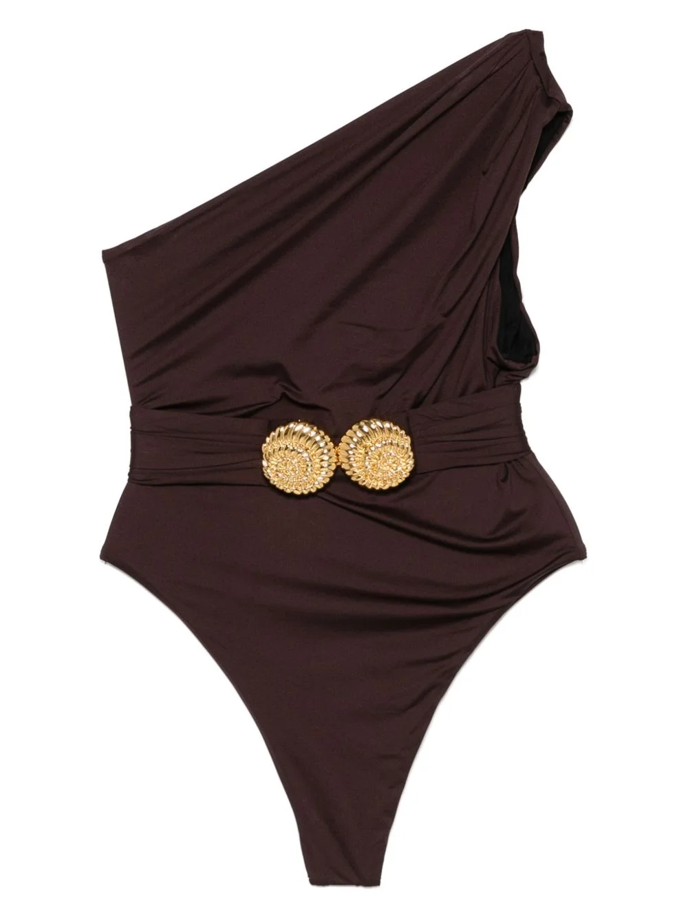 asymmetric swimsuit Highlights - Chocolate brown - Belted waist - One-shoulder - Partial lining - Be mindful to try on swimwear over your own garments. Made in Italy Composition Lining: Polyamide 75%, Elastane 25% Outer: Polyester 82%, Elastane 18%