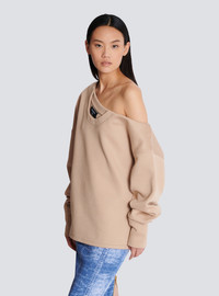 Asymmetrical jersey sweatshirt - Asymmetrical off-the-shoulder neckline - Double neckline effect - Woven Balmain Couture label on the front - Long sleeves - Oversized fit - Model measures 179cm and wears a size 36 - Main material: 62% cotton 38% polyamide - Made in Bulgaria - Item: EF1HU301JJ69
