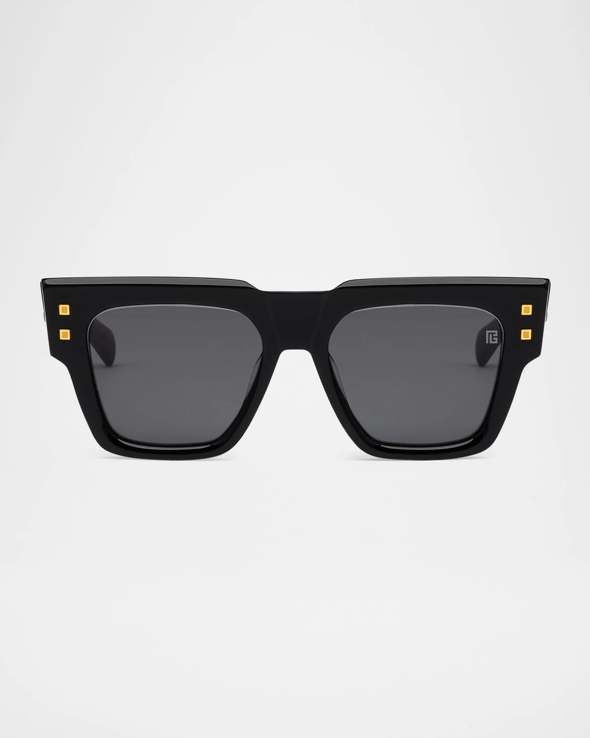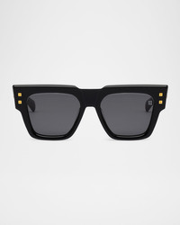 - Balmain "B-Army" square sunglasses crafted from acetate - Eye/bridge/temple (in mm): - 52-17-147 - Gradient lenses - Saddle nose bridge - Gold-tone logo hardware - Logo on the lens - Wide, tapered arms - 100% UVA/UVB protection - Made in Japan - Proposition 65 warning for California residents