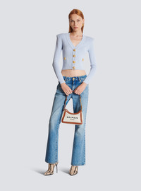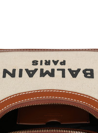 Canvas and calfskin B-Army bag - Two-material chain - Top zip fastening with gold finish - Balmain logo print - Comes with a protective cover - Dimensions: 19 x 12 x 7.5 cm - Main material: 58% cotton, 42% linen - Made in Italy - Item: EN1BT743TCFE