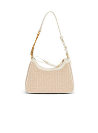 B-Army Shoulder bag in PB Labyrinthe-monogrammed jacquard canvas and calfskin leather - Carry in the hand or wear on the shoulder - Adjustable leather and chain handle with stud buttons - Topstitched smooth leather details - Visible zip fastening, leather PB slider - Balmain Paris-embossed leather knotted label - Embossed leather inside card pocket - Twill lining - Gold hardware - Dimensions: 23 x 15.5 x 7 cm - Main material: 100% cotton - Made in Italy - Item: FN1BT999TJQJ