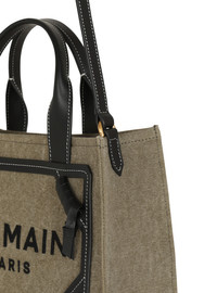 B-Army small canvas shopping bag with leather inserts - Leather handles - Printed Balmain logo - Interior welt pocket - Comes with a protective cover - Dimensions: 8 x 26 x 20.5 cm - Main material: 100% cotton and calf leather - Made in Italy - Item: DN1FE809TDVY