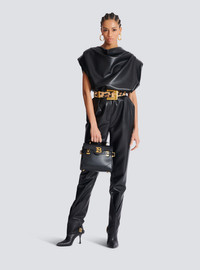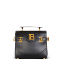 Smooth leather B-Buzz 23 bag - Handle and detachable shoulder strap with Balmain engraved snap hooks - Flap with B-Twist quarter-turn clasp - Patch pocket at the back - Zipped pocket, card holder slot and embossed logo on the inside - Reinforced bottom and metal bag feet - Golden hardware - Comes with a protective cover - Dimensions: 23 x 20 x 11 cm - Main material: 100% calfskin leather - Made in Italy - Item: DN1DB526LAVE