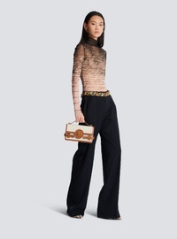 B-Buzz 24 bag in canvas and smooth leather - Thin removable leather shoulder strap and handle - Flap closure with B-Twist clasp - Engraved golden metal Balmain B logo on the front - Engraved golden metal Balmain plaque on the handle - 2 compartments, 1 card holder and a patch pocket on the inside - Golden hardware - Smooth leather lining - Dimensions: 24 x 4 x 14.5 cm - Main material: 100% calfskin leather - Made in Italy - Item: DN1DA829TCFE