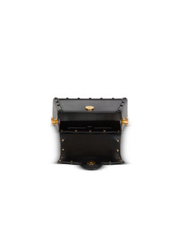 B-Buzz Dynasty Small leather bag - Carry in the hand, on the shoulder or across the body - Leather handle, Balmain-engraved metal plaque - Detachable chain strap with engraved snap hooks - Flap with B clasp and magnetic press stud - Patch pocket on the back - Inside card pocket - Leather lining - Metal bag feet - Gold and black hardware - Dimensions: 5 x 17.5 x 11.5 cm - Main material: 100% calfskin leather - Made in Italy - Item: DN1DA907LRHA