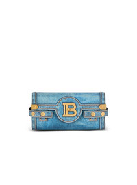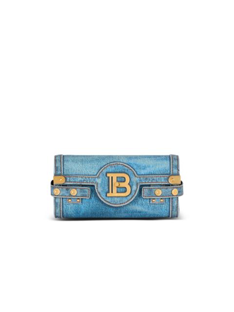 B-Buzz Pouch 23 in denim print canvas - Carry in the hand, on the shoulder or across the body - Detachable chain strap - Flap with quarter-turn B-Twist clasp - Metal details on flap corners - Inside leather card pocket, embossed Balmain logo - Vintage gold hardware - Dimensions: 23 x 12 x 7 cm - Shoulder strap: 105 cm - Main material: 100% cotton - Made in Italy - Item: EN1LE596TDEN