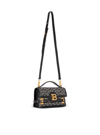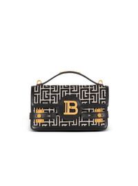 B-Buzz Shoulder 24 bag in calfskin and PB jacquard canvas - Carry in the hand, on the shoulder or across the body - Leather handle, Balmain-engraved plaque - Adjustable and removable leather shoulder strap with snap hooks - Flap with quarter-turn B-Twist clasp - 2 interior compartments - Inside pocket and card pocket - Vintage gold hardware - Dimensions: 24 x 4 x 14.5 cm - Shoulder strap: 110 cm - Main material: 90% cotton 10% polyester - Made in Italy - Item: EN1DA829TJGH