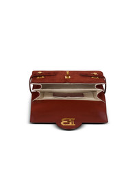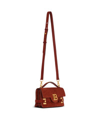 B-Buzz Shoulder 24 bag in suede - Carry in the hand, on the shoulder or across the body - Leather handle, Balmain-engraved plaque - Adjustable and removable leather shoulder strap with snap hooks - Flap with quarter-turn B-Twist clasp - 2 interior compartments - Inside leather card pocket, embossed Balmain logo - Vintage gold hardware - Dimensions: 23 x 8 x 14 cm - Shoulder strap: 110 cm - Main material: 100% calfskin - Made in Italy - Item: FN0DA828LCRA