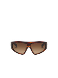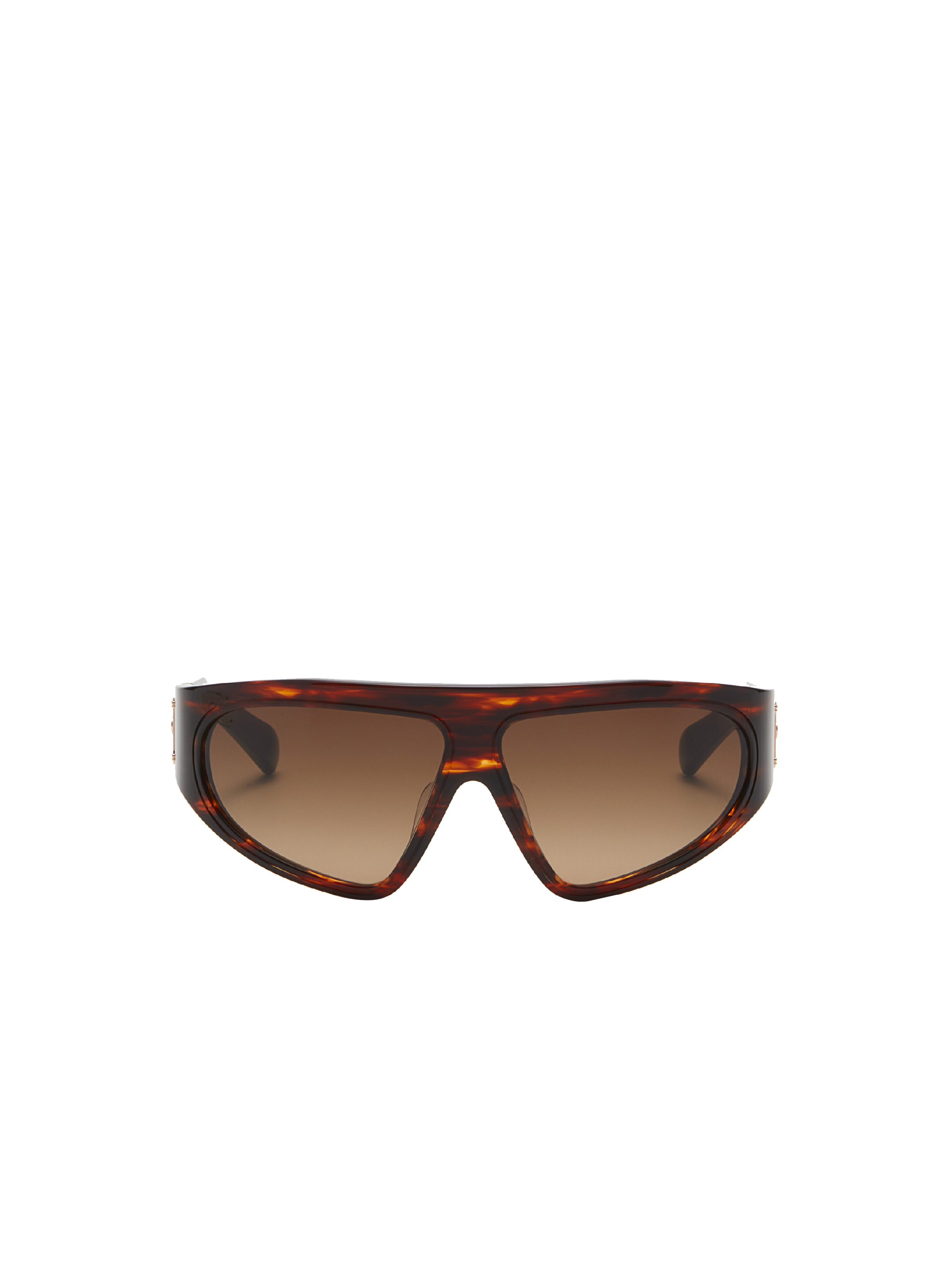 Bi-material sunglasses - Oversized mask frame - Branded hockey temples with tips - Titanium screw hinges - Gold titanium details - Material: acetate, titanium - Made in Japan - Item : ABPS143